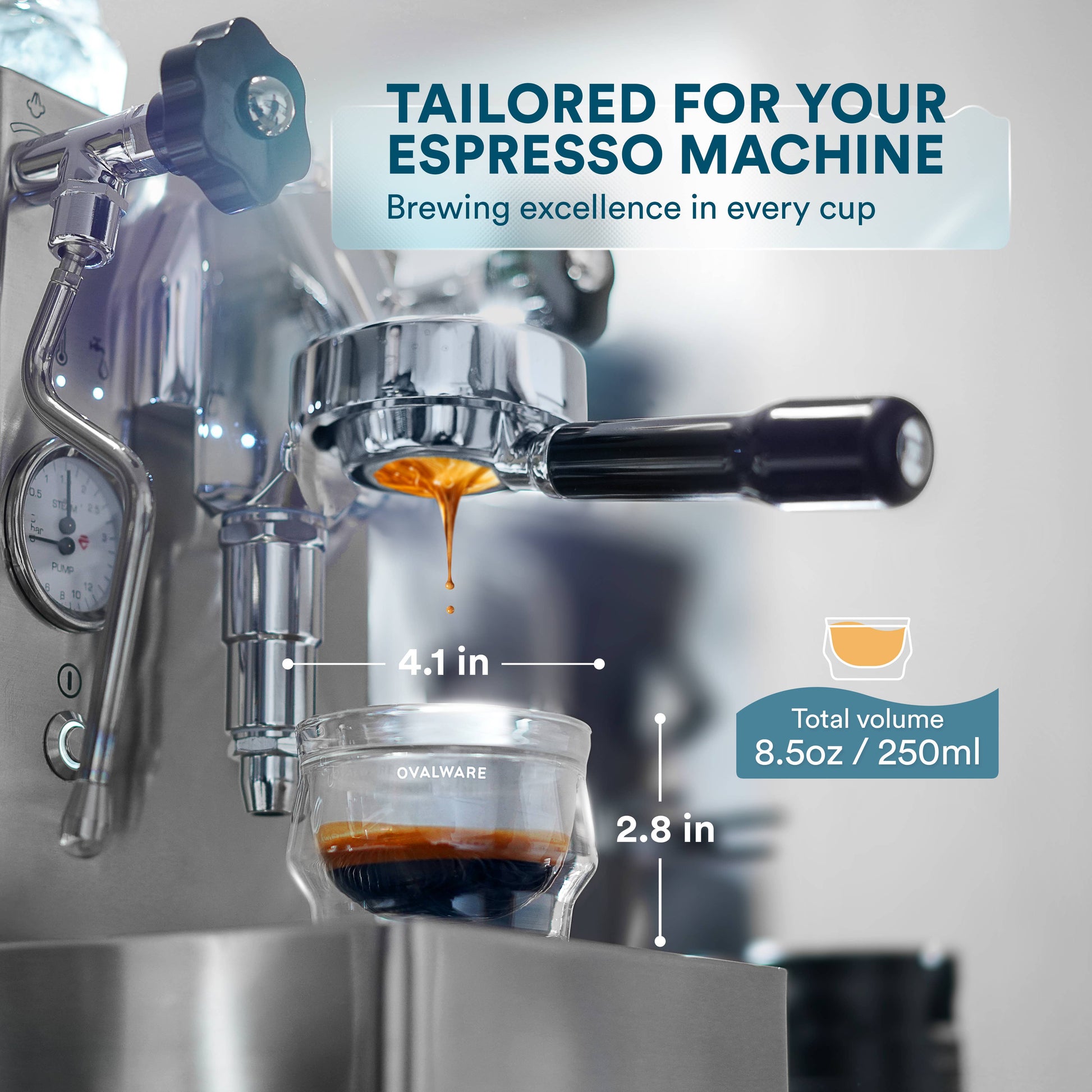 Features: — Espresso Machine Compatible: With dimensions of 2.8" H x 4.1" W, these glasses are tailored to fit seamlessly under most espresso machine spouts. Multi-Functional Use: Doubles as cupping bowls for those exploring specialty coffee flavors, adding versatility to the product. Specifications: — Capacity: 250mL / 8.5oz — Material: Clear Double Wall Glass